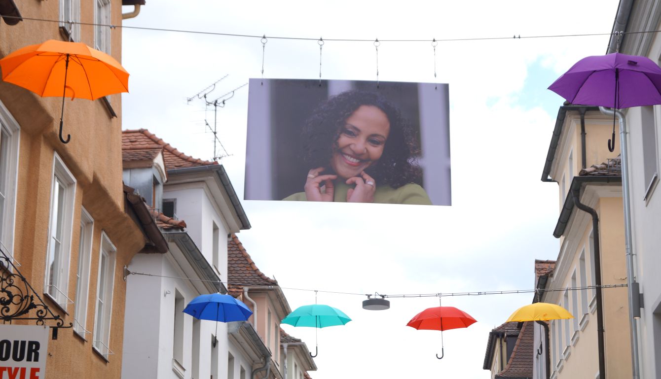 Ab sofort erfreuen strahlende Gesichter die Besucher der Neustadt. Die Bilder sind am 28. Juli 2023 der Öffentlichkeit vorgestellt worden.